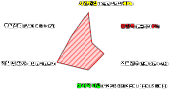 두드림은 고객님의 눈과 귀가 되어, 철저한 비밀보장을 원칙으로 업계 최강의 실무 경험을 가진 최정예 멤버들이 고객의 입장에서 모든 일을 철저히 기획하여 신속하고 정확하게 해결해 드리기 위해 최선의 노력을 다하고 있습니다.